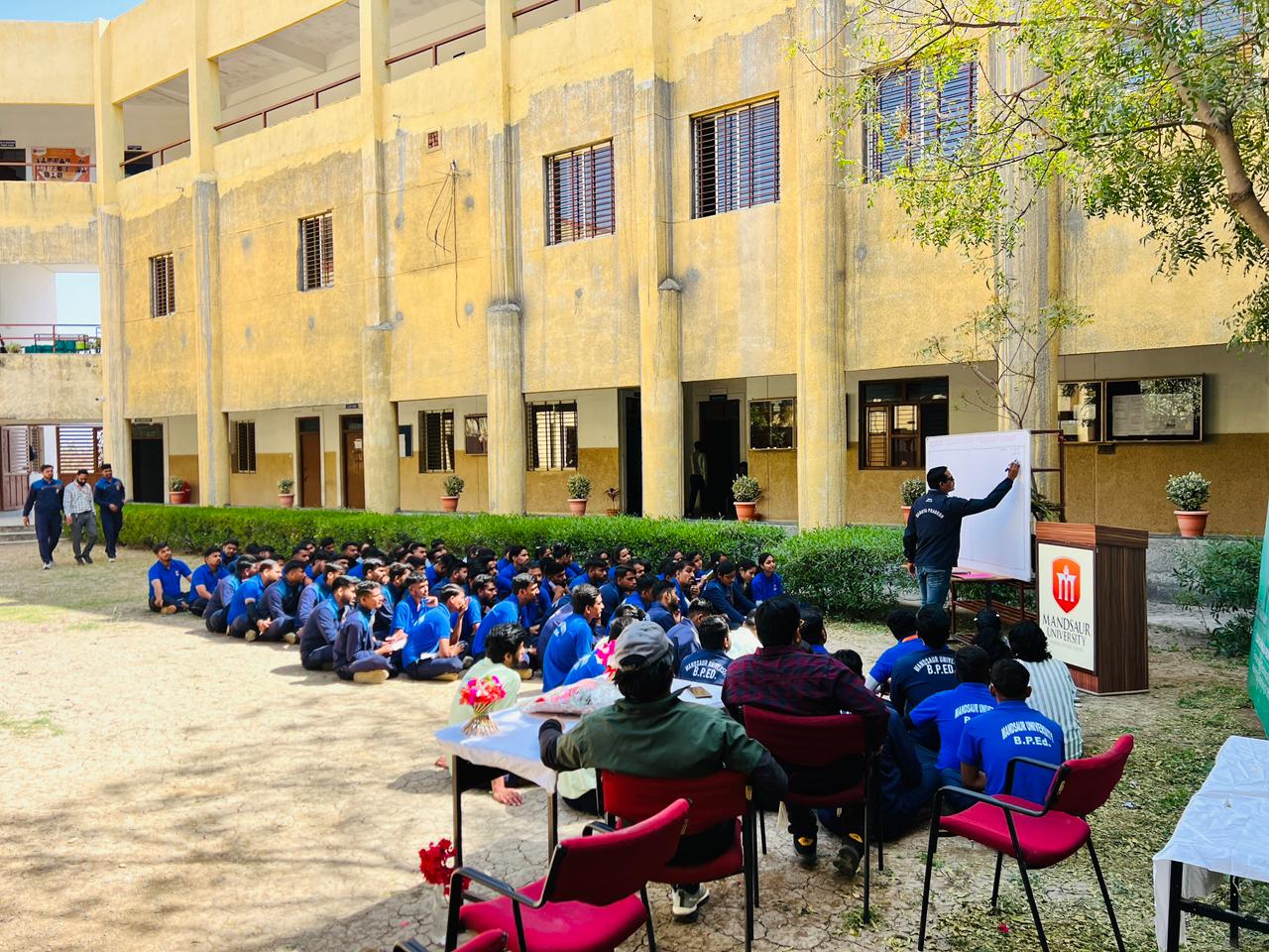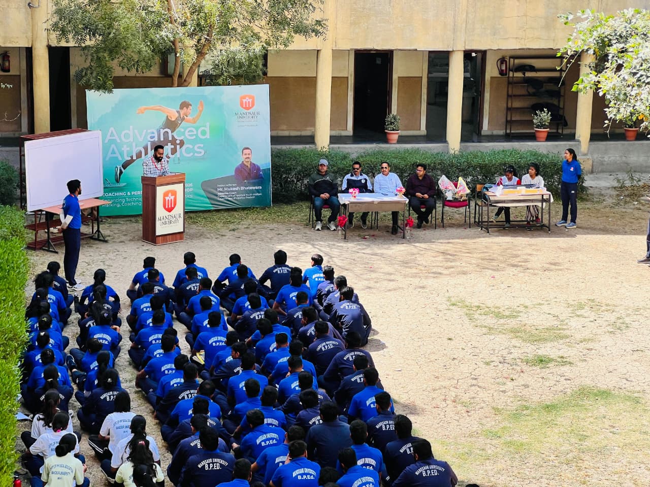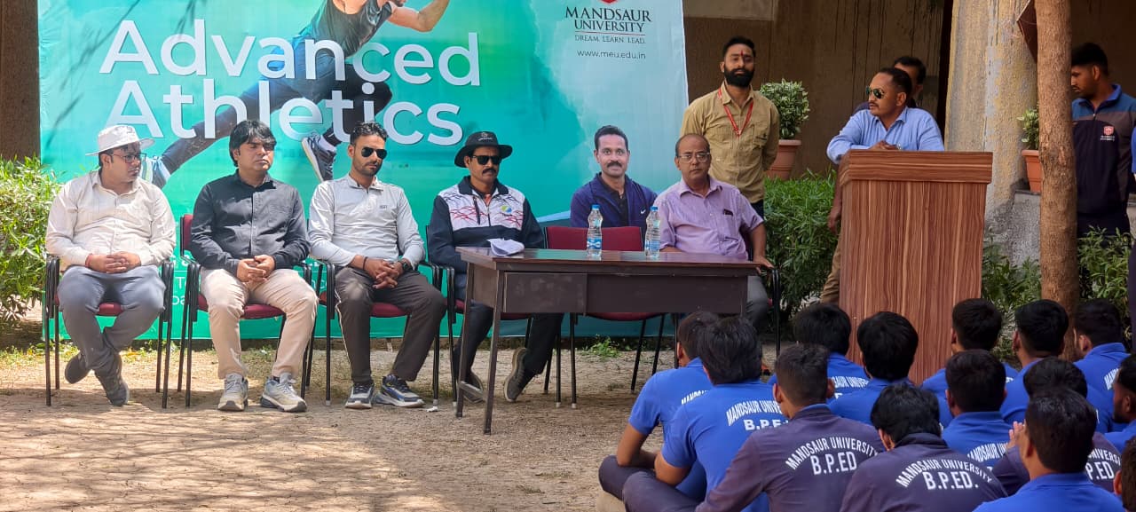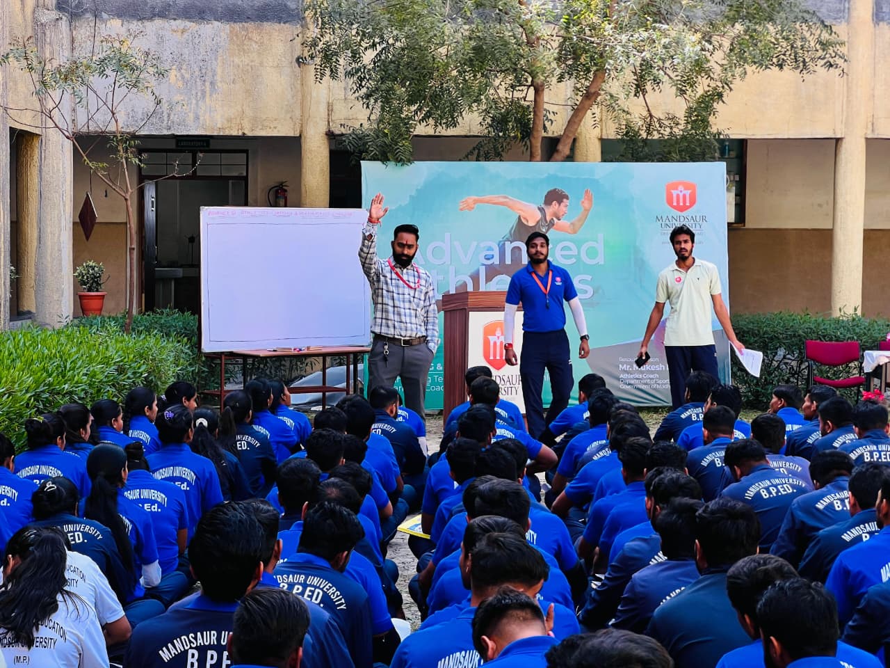 The Mandsaur Institute of Physical Education, Mandsaur University organized a two-day Advanced Athletics Workshop on 17–18 March (09:00 AM – 05:00 PM) for the students of B.P.Ed. and B.P.E.S. programs. The workshop was conducted under the expert guidance of Mr. Mukesh Bhatewara, an experienced athletics expert, with the objective of providing students with practical exposure to athletics ground marking, officiating procedures, and general technical aspects of track and field events.