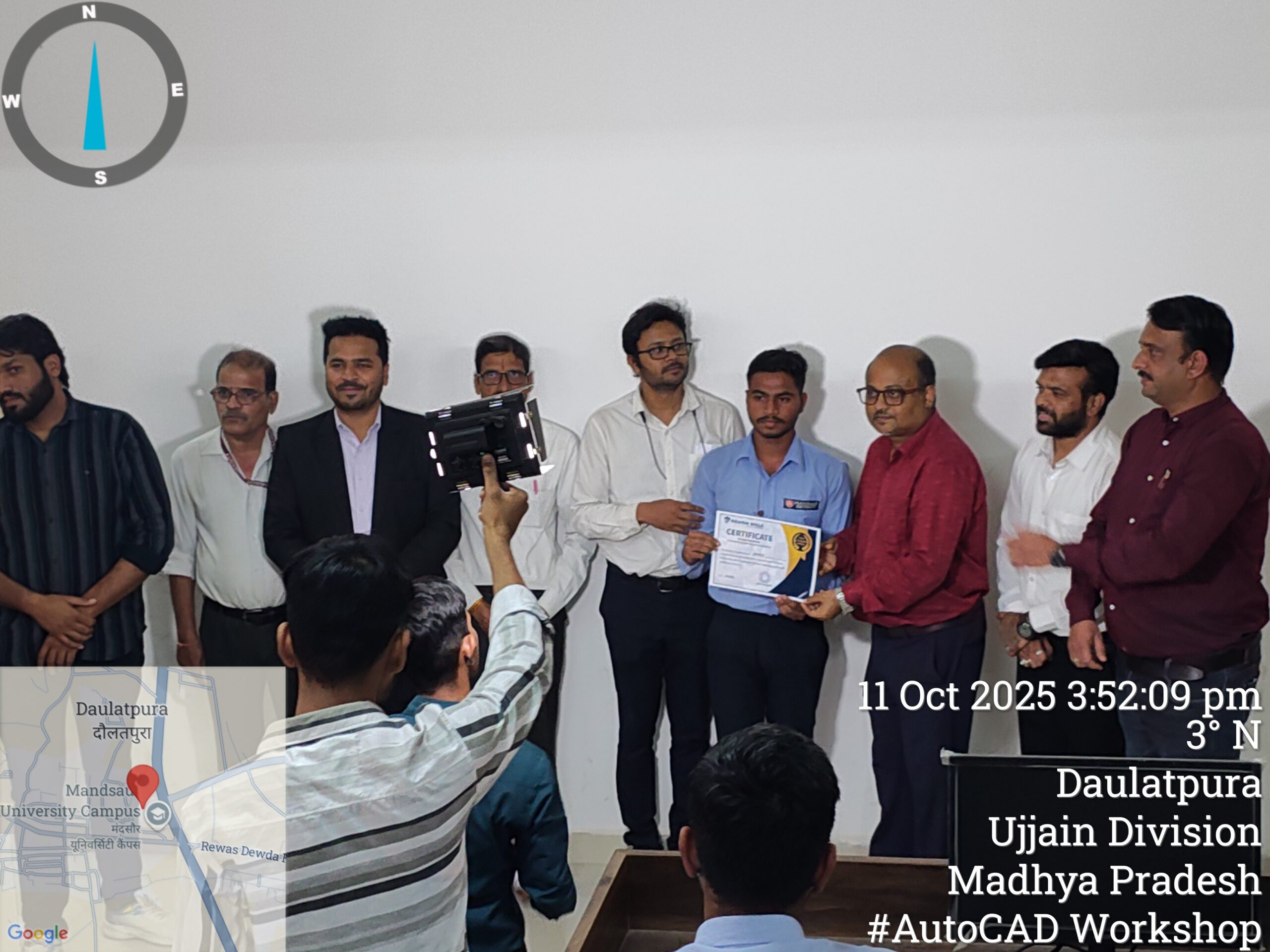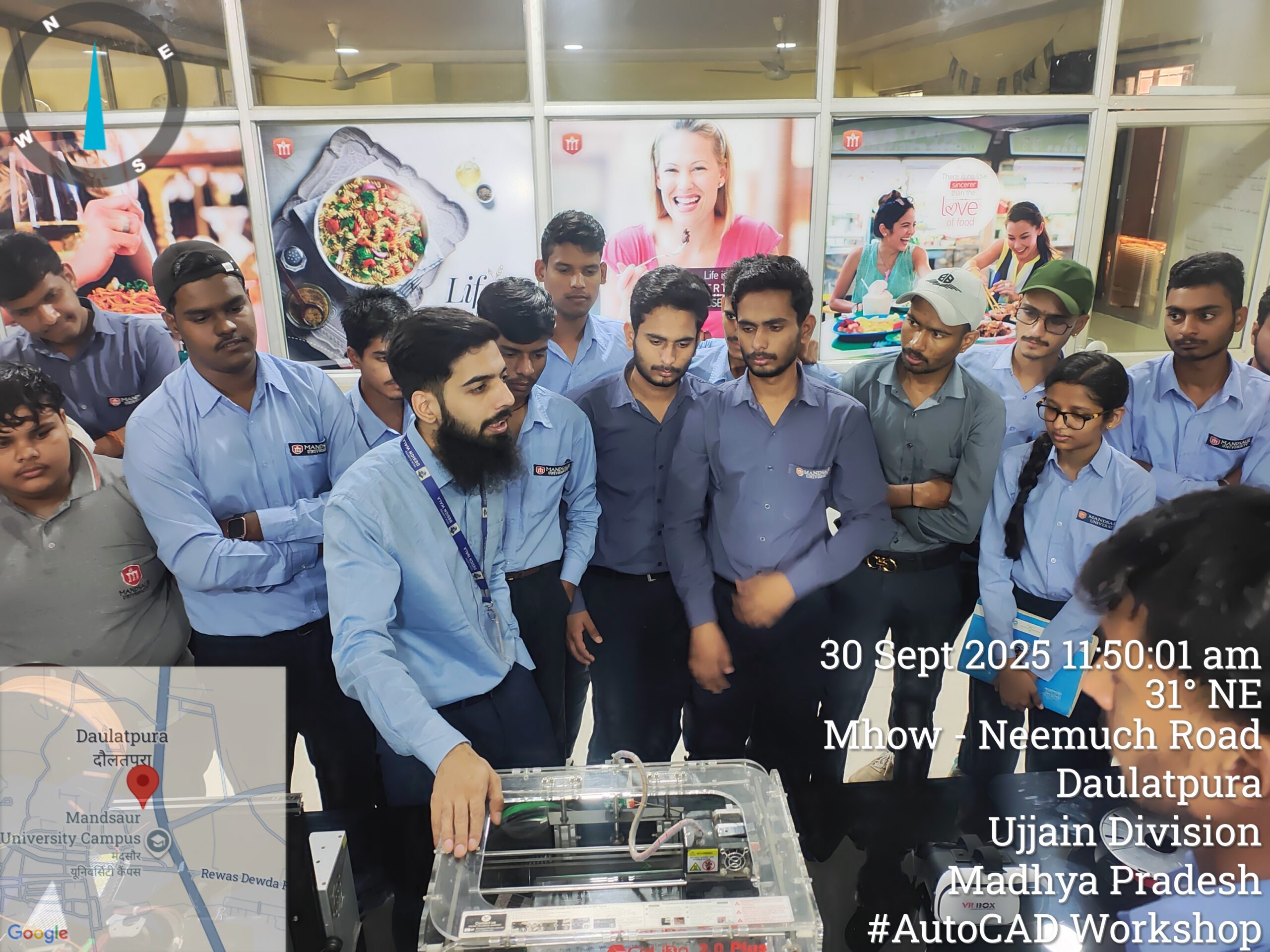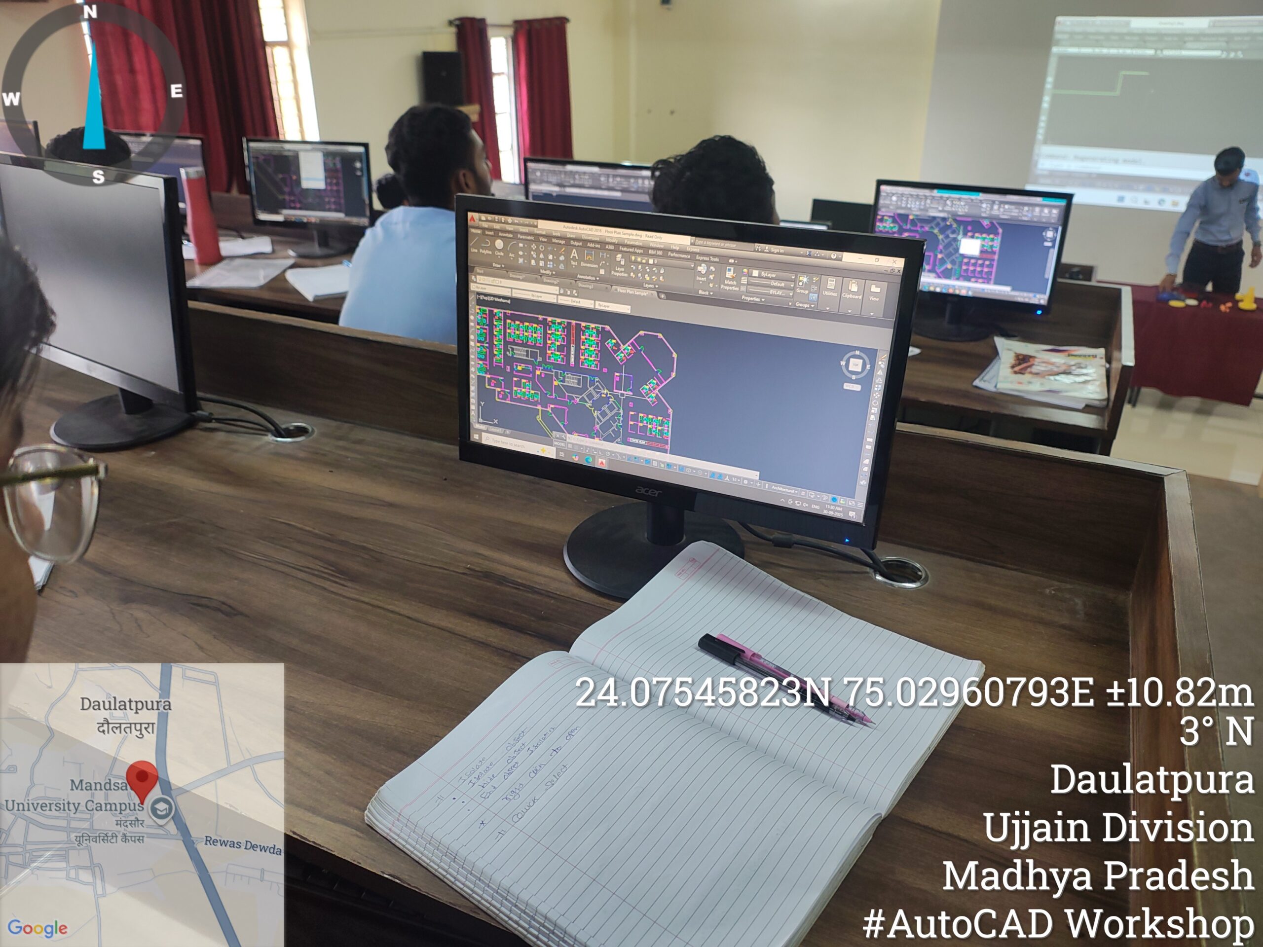 A 12-day AutoCAD workshop was jointly organized by the Departments of Electrical and Electronics Engineering and Mechanical Engineering for all B.Tech Electrical and Mechanical students. The sessions were led by Mr. Dharmendra Jat, a certified trainer and director of Tech Cluster Indore, who delivered extensive hands-on training and in-depth guidance on both 2D and 3D design concepts throughout the program.