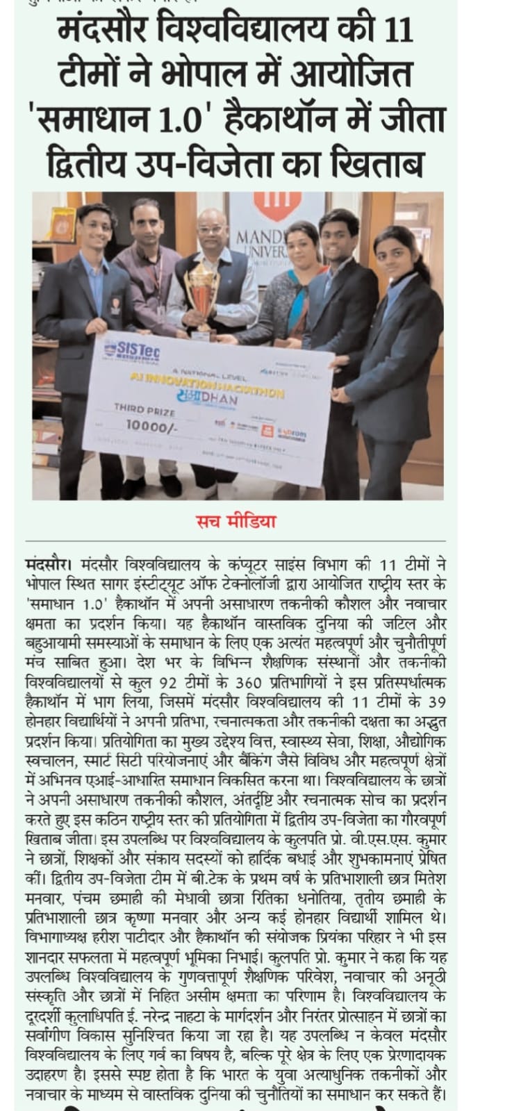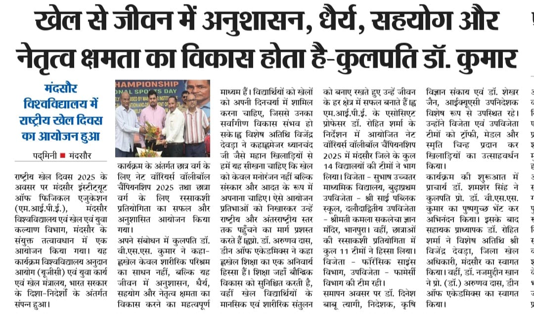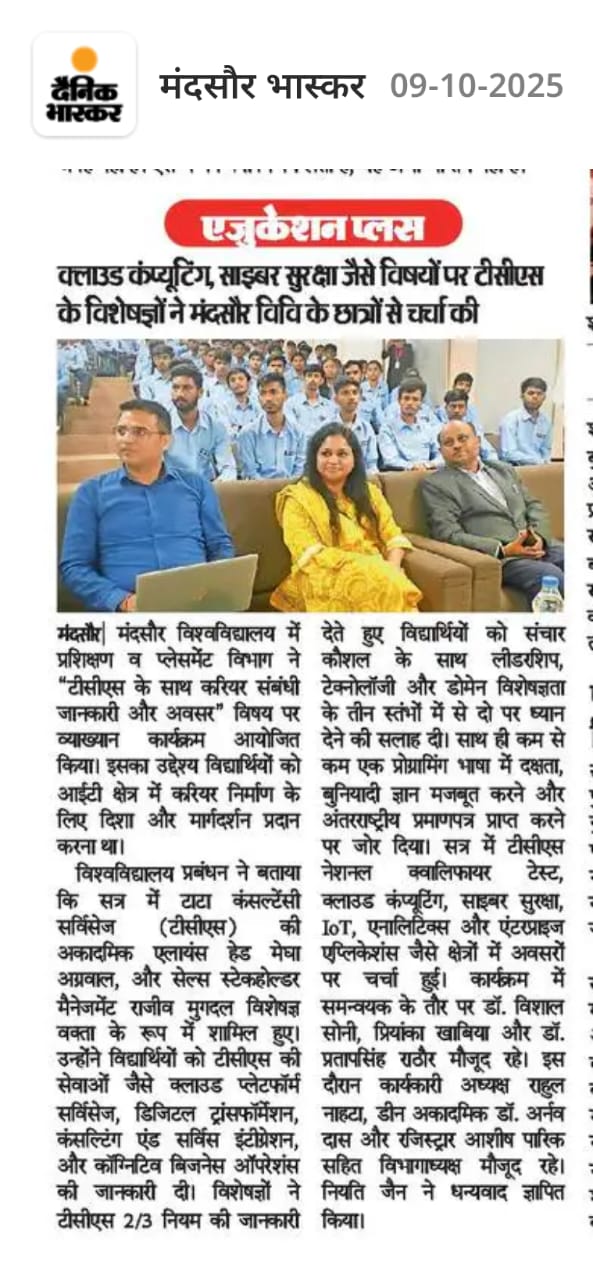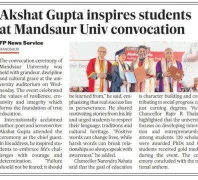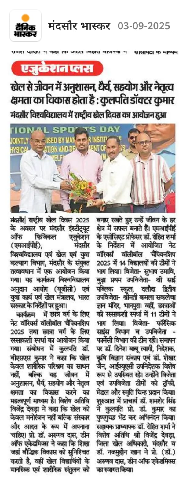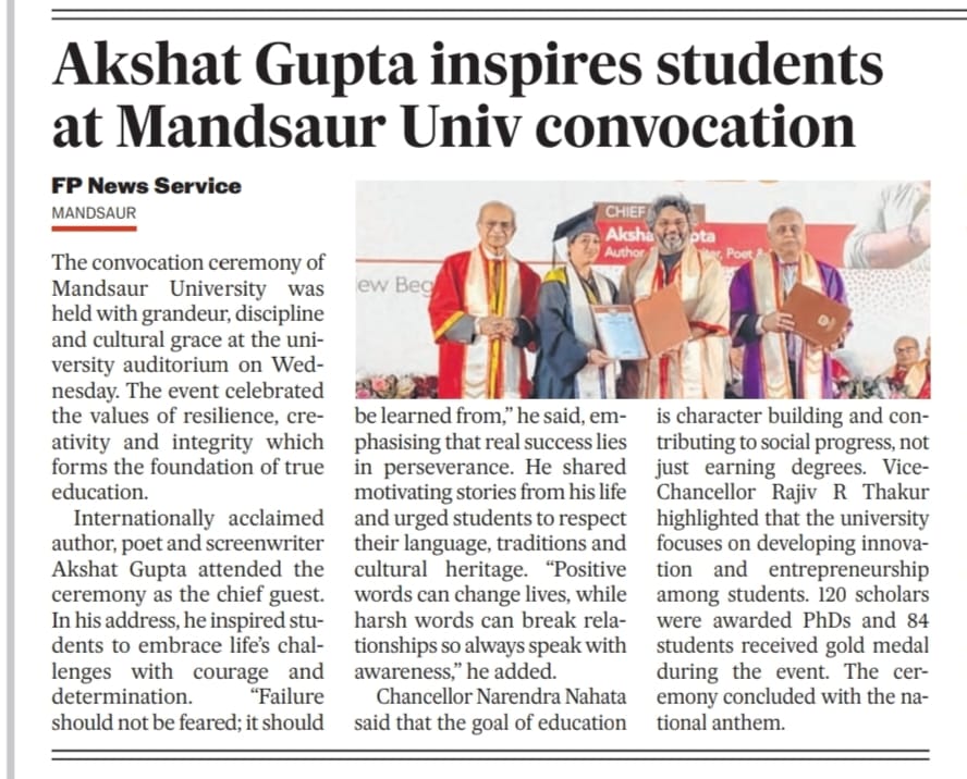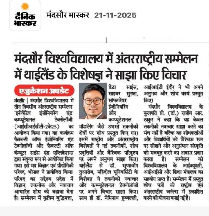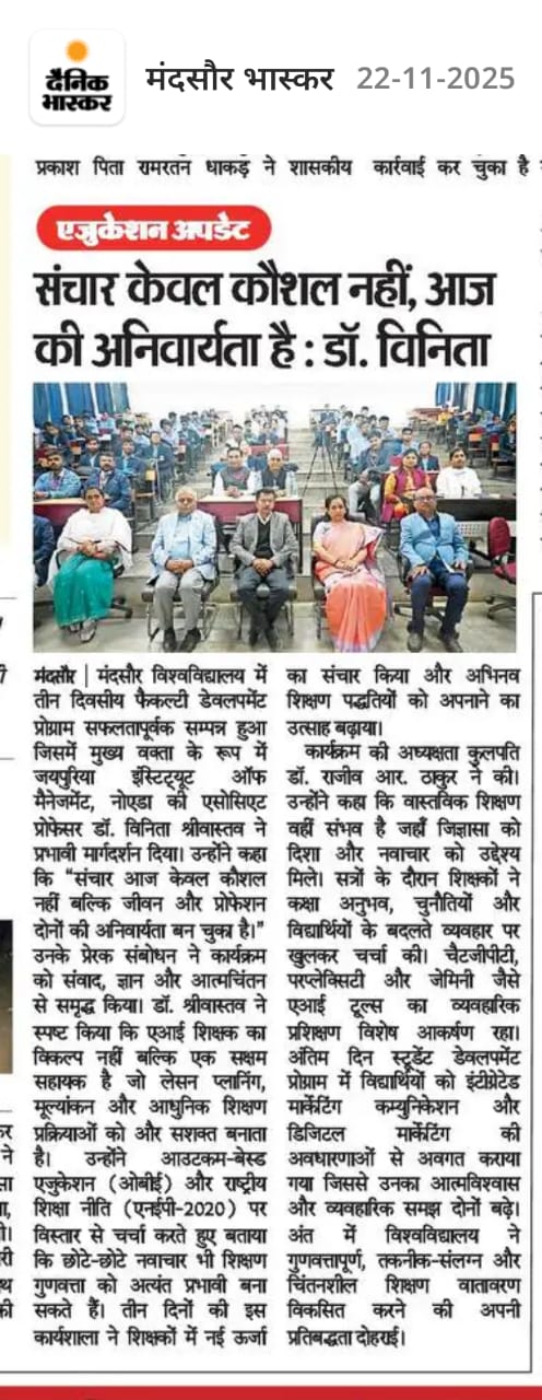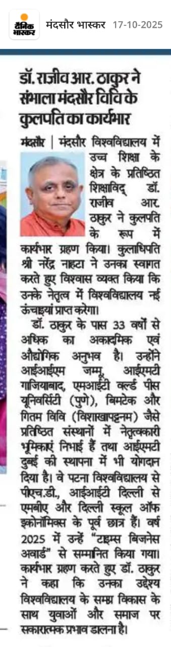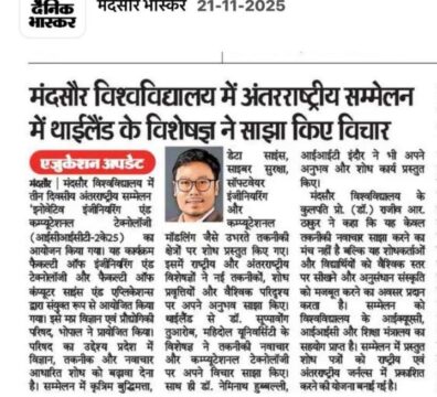 Happenings Events Upcoming Events Media Coverage Photo gallery Infrastructure MU Talks Campus Khabar Latest NewsINDIA BOOK OF RECORDS Read More Latest NewsNational Sports Day Celebration 2025 Read More Latest NewsOrientation Program on “Importance of Read More Latest NewsInduction Program Read More DBAC Activity Expert Talk on “Management Fundas Read More DBAC ActivityExpert lecture on Time Management Read More Latest News11th INTERNATIONAL DAY OF YOGA Read More Latest NewsVillage Placement Program (VPP) “Sankalp Read More Latest NewsOne Day Guest Lecture Read More EEE ActivityIndustrial Visit Read More Latest NewsHockey Training Workshop on Officiating Read More Latest NewsMARVIK VISIONARY QUEST – UMANG Read More There are no posts in this query News 1 News 2 News 3 News 4 News 5 News 6 News 7 News 8 News 9 News 10 News 11 News 12 News 13 News 14 News 15 News 16 News 17 News 19 News 20 News 21 News 22 News 23 News 24 News 25 SECOND CONVOCATION CEREMONY 1OTH FOUNDATION DAY OF MANDSAUR UNIVERSITY SPANDAN2K25 | CELEBRITY NIGHT SPANDAN2K24 GLIMPSES SPANDAN2K23 | CELEBRITY NIGHT FIRST CONVOCATION CEREMONY defaultPodcast PodcastPodcast: Holi, the festival of Read More PodcastAudio News Capsule: MU’s Female Read More PodcastRADIO News Capsule of Spandan Read More Campus KhabarMandsaur University 2nd Convocation 2025 Read More Campus KhabarUS-Based Mandsaur University Alumnus Awards Read More Campus KhabarHighlights of Spandan 2K25 Banner Read More Campus KhabarMandsaur University Celebrated Int’l Women’s Read More Campus KhabarPhysical Education hosts day-long program Read More Campus KhabarIn Conversation with Prof. K. Read More Campus KhabarShort Film based on Self Read More Campus KhabarMandsaur University Hosts Skill Enhancement Read More Campus Khabar76th Republic Day Highlights at Read More Campus KhabarRivalry 2K24: Highlights of the Read More Campus KhabarExciting Visuals of Ganpati Maha Read More Campus KhabarHighlights of Alumni Meet at Read More