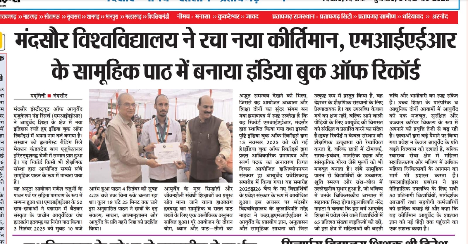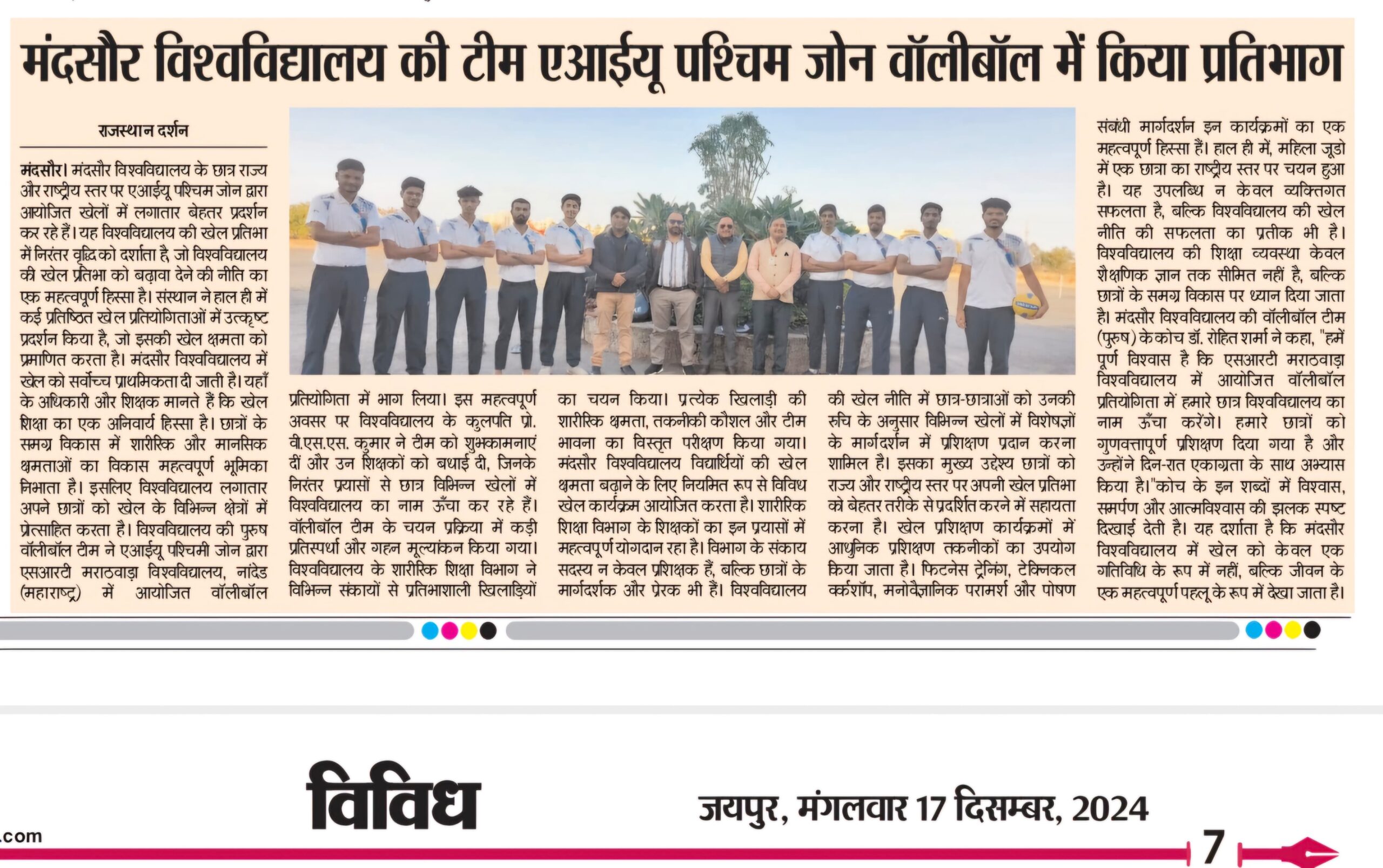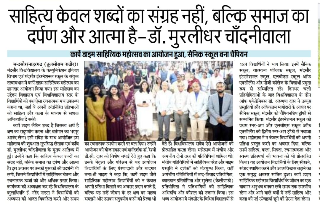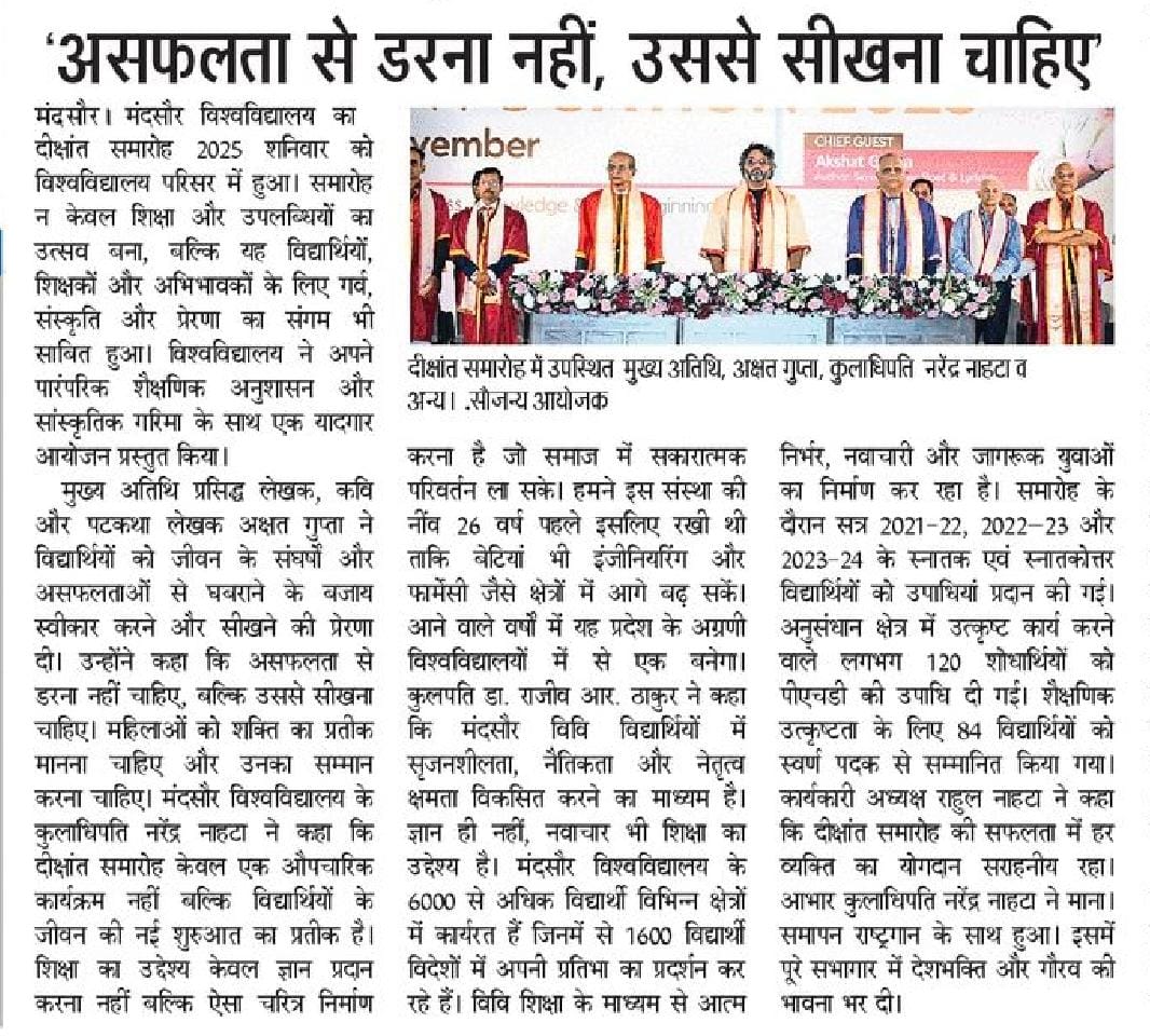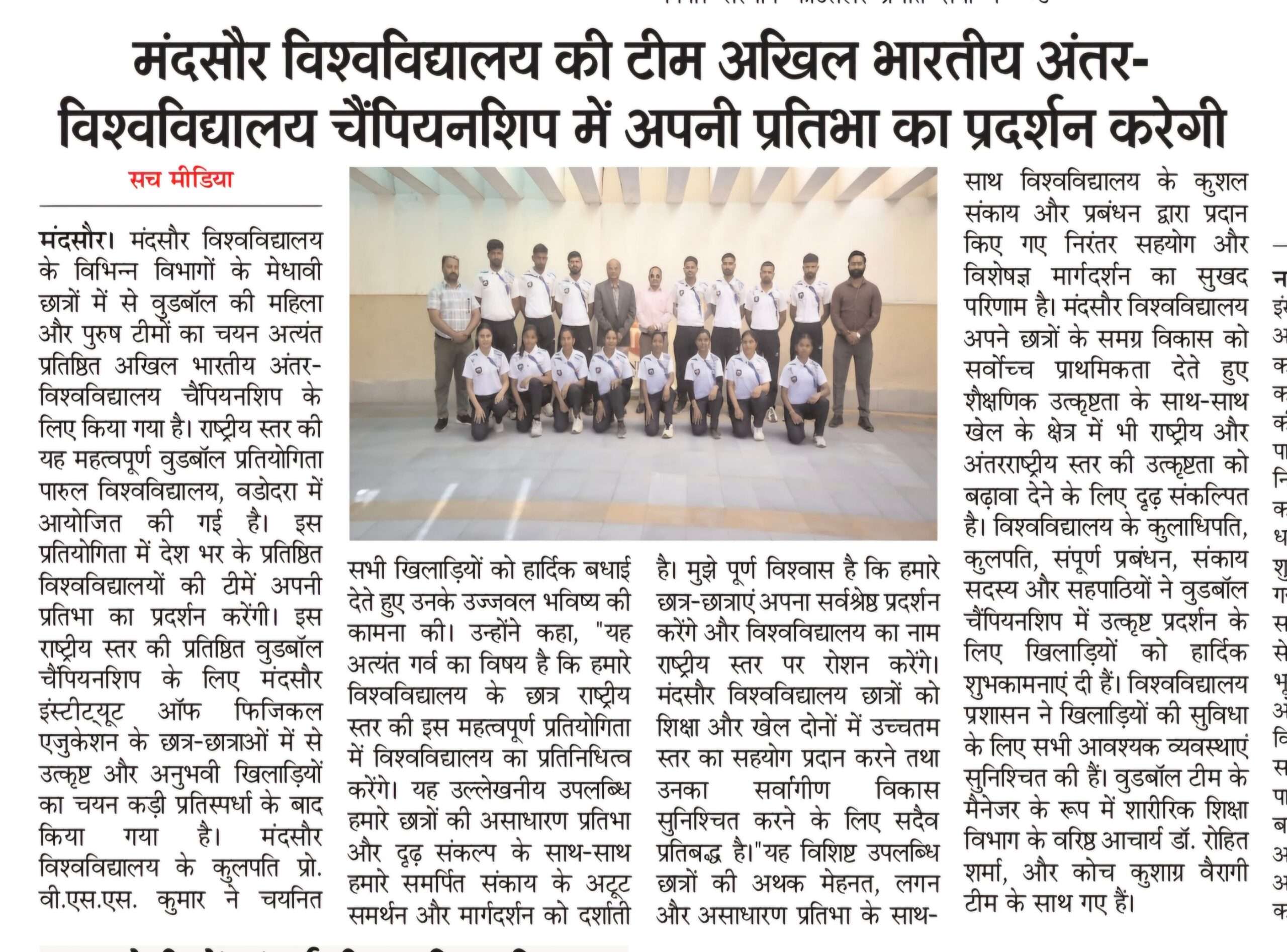 Happenings Events Upcoming Events Media Coverage Photo gallery Infrastructure MU Talks Campus Khabar Latest NewsINDIA BOOK OF RECORDS Read More Latest NewsNational Sports Day Celebration 2025 Read More Latest NewsOrientation Program on “Importance of Read More Latest NewsInduction Program Read More DBAC Activity Expert Talk on “Management Fundas Read More DBAC ActivityExpert lecture on Time Management Read More Latest News11th INTERNATIONAL DAY OF YOGA Read More Latest NewsVillage Placement Program (VPP) “Sankalp Read More Latest NewsOne Day Guest Lecture Read More EEE ActivityIndustrial Visit Read More Latest NewsHockey Training Workshop on Officiating Read More Latest NewsMARVIK VISIONARY QUEST – UMANG Read More There are no posts in this query News 1 News 2 News 3 News 4 News 5 News 6 News 7 News 8 News 9 News 10 News 11 News 12 News 13 News 14 News 15 News 16 News 17 News 19 News 20 News 21 News 22 News 23 News 24 News 25 SECOND CONVOCATION CEREMONY 1OTH FOUNDATION DAY OF MANDSAUR UNIVERSITY SPANDAN2K25 | CELEBRITY NIGHT SPANDAN2K24 GLIMPSES SPANDAN2K23 | CELEBRITY NIGHT FIRST CONVOCATION CEREMONY defaultPodcast PodcastPodcast: Holi, the festival of Read More PodcastAudio News Capsule: MU’s Female Read More PodcastRADIO News Capsule of Spandan Read More Campus KhabarMandsaur University 2nd Convocation 2025 Read More Campus KhabarUS-Based Mandsaur University Alumnus Awards Read More Campus KhabarHighlights of Spandan 2K25 Banner Read More Campus KhabarMandsaur University Celebrated Int’l Women’s Read More Campus KhabarPhysical Education hosts day-long program Read More Campus KhabarIn Conversation with Prof. K. Read More Campus KhabarShort Film based on Self Read More Campus KhabarMandsaur University Hosts Skill Enhancement Read More Campus Khabar76th Republic Day Highlights at Read More Campus KhabarRivalry 2K24: Highlights of the Read More Campus KhabarExciting Visuals of Ganpati Maha Read More Campus KhabarHighlights of Alumni Meet at Read More