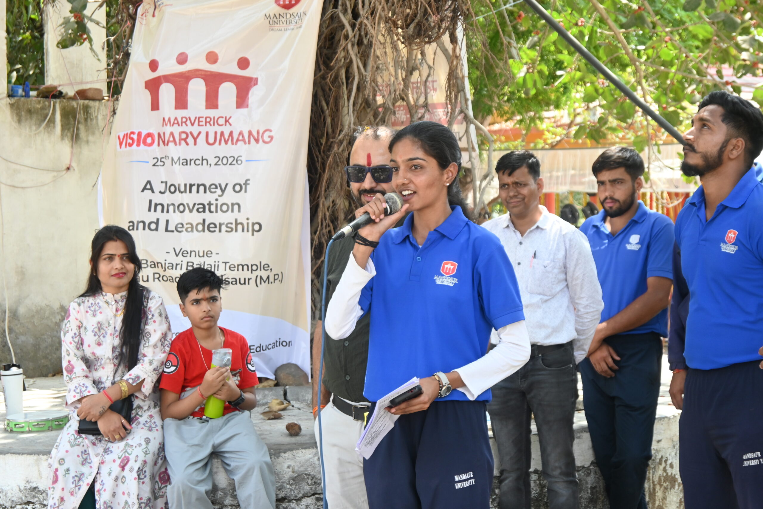 The Marverick Visionary “UMANGA” Journey of Innovation and Leadership was magnificently organized by the Mandsaur Institute of Physical Education, Mandsaur University, at the serene and spiritually vibrant Shree Banjari Balaji Temple. The event witnessed overwhelming enthusiasm, with more than 110 students and 6 faculty members actively participating in a wide spectrum of dynamic and engaging activities.